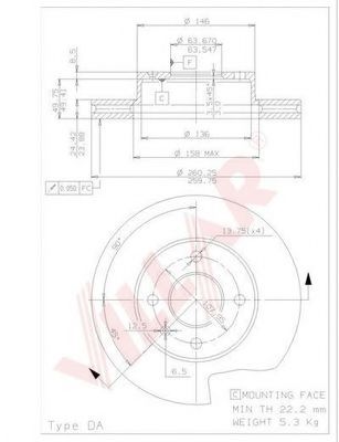 Толщина тормозного диска (мм) : 22