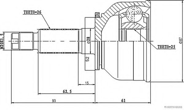 Внешнее зацепление со стороны колеса : 26Внутренне зубчатое соединение со стороны колеса : 25Диаметр прокладки [мм] : 52Сторона установки : со стороны колесаТип соединения / сочленения : Шарнир равных угловых скоростей