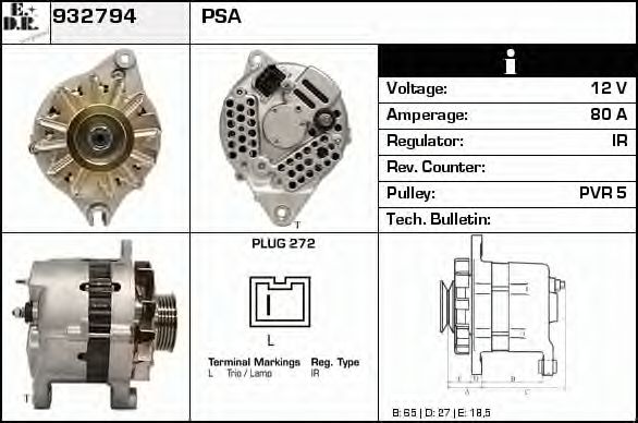 расстояние от ременного шкива до генератора [мм] : 51,5
