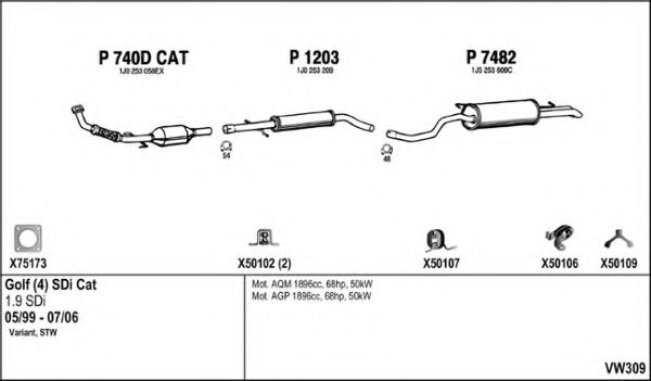 Глушитель в сборе для VW GOLF IV Variant (1J5) 1.9 SDI