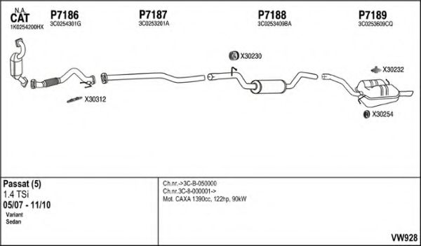 Глушитель в сборе для VW PASSAT (3C2) 1.4 TSI