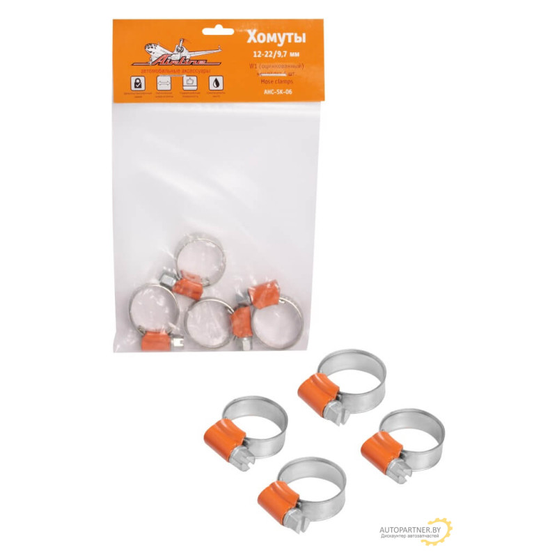 Купить автозапчасти в Гомеле, моторное масло купить, дешево купить. Хомуты AIRLINE 12-22/9, 7 мм, W1 (оцинкованный), комплект 4 шт. / AHC-SK-06