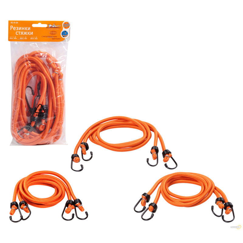 Резинки-стяжки AIRLINE набор 6 шт.: 2 шт.-60см, 2шт.-80см, 2шт-100см, D-8 мм (металлические крючки) / AS-R-04