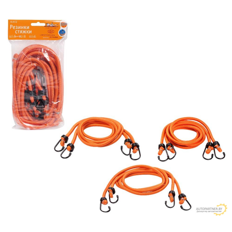 Купить автозапчасти в Гомеле, моторное масло купить, дешево купить. Резинки-стяжки AIRLINE набор 6 шт.: 2 шт.-80см, 2шт.-100см, 2шт-120см, D-8 мм, (метал. крючки) / AS-R-11