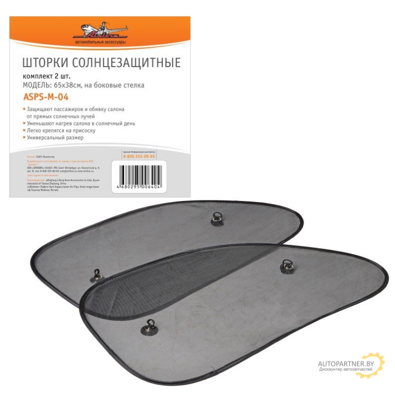 Купить автозапчасти в Гомеле, моторное масло купить, дешево купить. Шторки солнцезащитные на боковые стекла 65х38см, 2 шт. AIRLINE / ASPS-M-04