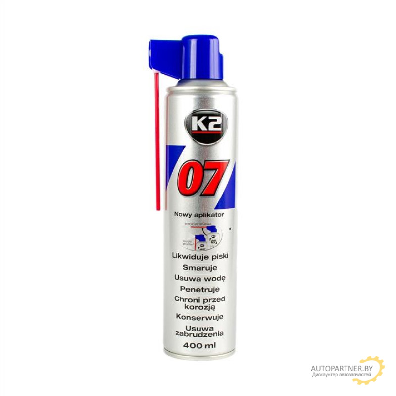 Многофункциональный 07 препарат. Содержит группу из 7 синтетически активных субстанций, соединенных воедино. Обеспечивает исключительно высокий результат при использовании. Смазывает и консервирует без необходимости демонтажа. Предупреждает коррозию инструментов, которые зимой не были в употреблении. Отлично высушивает провода зажигания и защищает их от влажности. Протравливает и снимает блокаду прикипевших болтов, колес тележек и т. п. Ликвидирует писк и скрежет. обладает приятным ароматом.