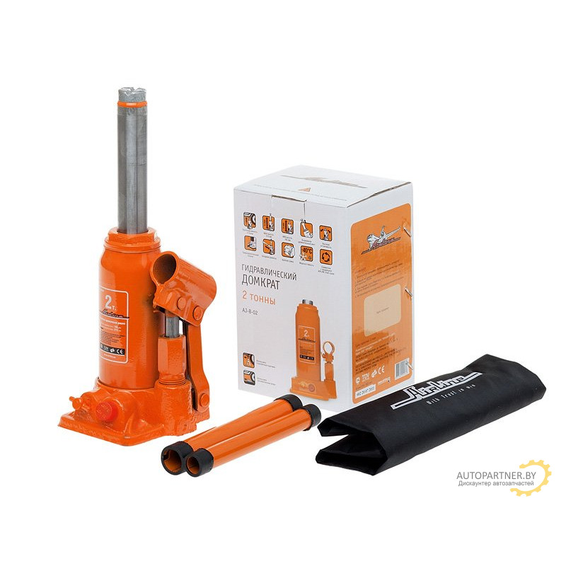 Купить автозапчасти в Гомеле, моторное масло купить, дешево купить. Домкрат бутылочный AIRLINE 2т в сумке (MIN - 165 мм, MAX - 315 мм) / AJ-B-02