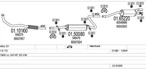 Глушитель в сборе для ALFA ROMEO 33 (907A) 1.8 TD (907A5)