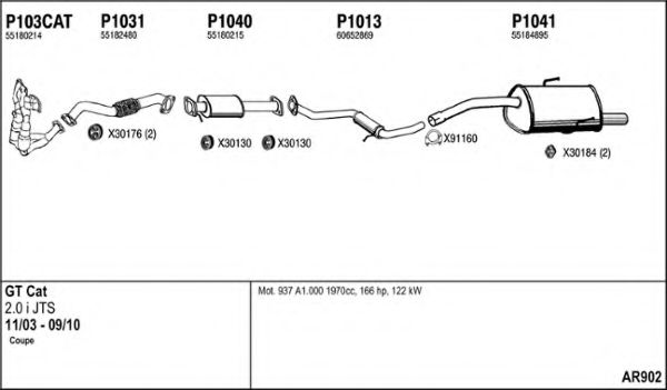 Глушитель в сборе для ALFA ROMEO GT (937) 2.0 JTS