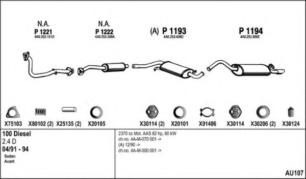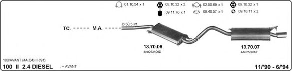 Глушитель в сборе для AUDI 100 (4A, C4) 2.4 D