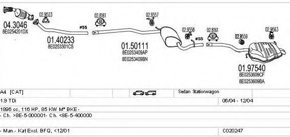 Глушитель в сборе для AUDI A4 (8E2, B6) 1.9 TDI
