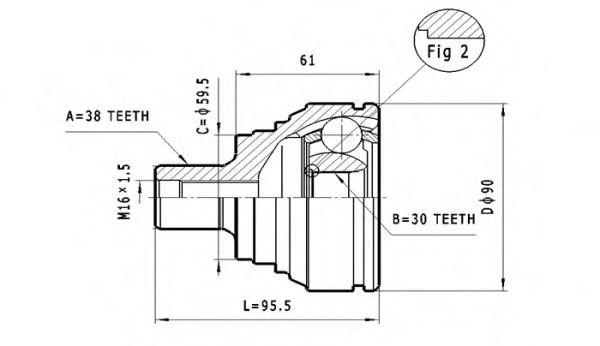 Внешнее зацепление со стороны колеса : 38Внутренне зубчатое соединение со стороны колеса : 30Диаметр прокладки [мм] : 59,5Наружный диаметр [мм] : 90Сторона установки : со стороны колесаТип соединения / сочленения : Шарнир равных угловых скоростейТормозная динамика / динамика движения : для автомобилей без ABS