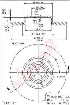 Тип тормозного диска : полный