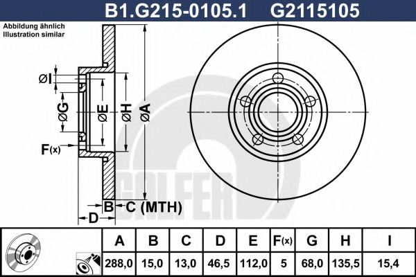 для тормозного диска толщиной [мм] : 15