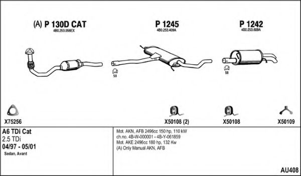 Глушитель в сборе для AUDI A6 (4B2, C5) 2.5 TDI