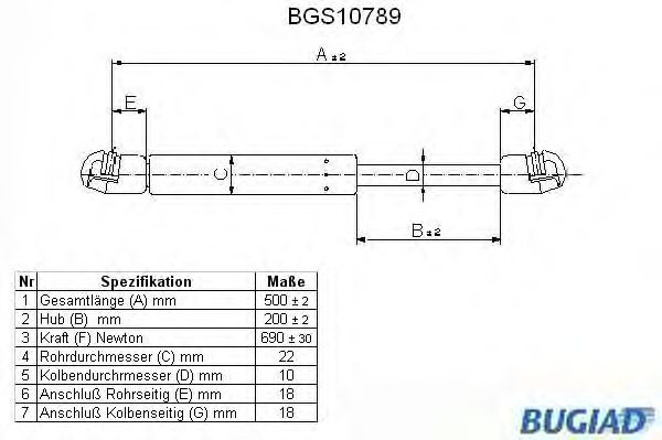 Высота подъема [мм] : 200 Выталкивающая сила [N] : 690 Общая длина [мм] : 500