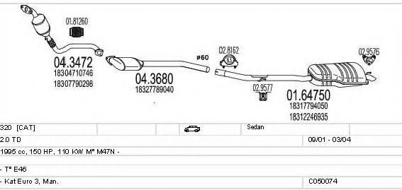 Глушитель в сборе для BMW 3 (E46) 320 d
