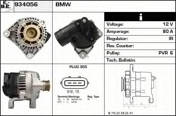 Идентификационный номер исполнения штекерного разъема : B+ 61E 15 Напряжение [В] : 14 ток зарядки от генератора (А) : 120