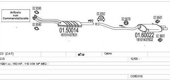Глушитель в сборе для BMW Z3 (E36) 2.0