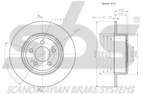 Диаметр фаски 2 [мм] : 72