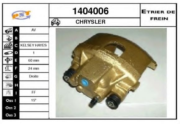 Тип тормозного суппорта : суппорт тормоза (1 поршень)