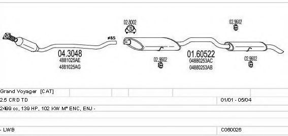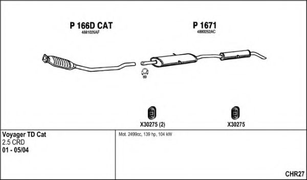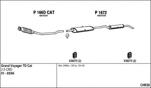 Глушитель в сборе для CHRYSLER GRAND VOYAGER IV (RG, RS) 2.5 CRD