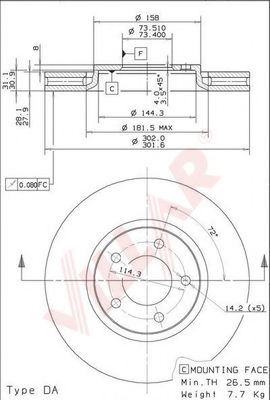 Диаметр [мм] : 302 Диаметр фаски 2 [мм] : 114,3 Диаметр центрирования [мм] : 73,5 Показать больше свойств
