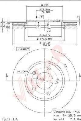 Диаметр [мм] : 282,5 Диаметр центрирования [мм] : 73,4 для тормозного диска толщиной [мм] : 23,7 Показать больше свойств