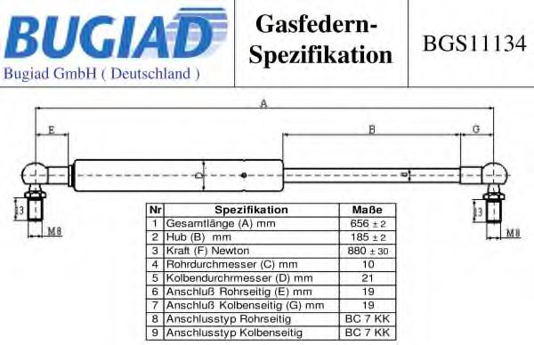 Высота подъема [мм] : 173 Выталкивающая сила [N] : 900 Общая длина [мм] : 634