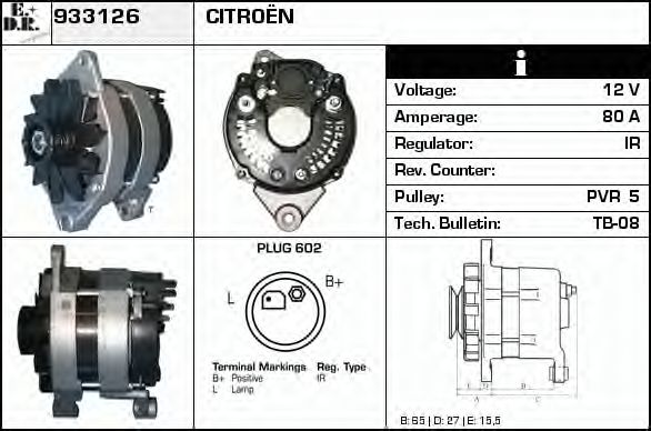 ток зарядки от генератора (А) : 80