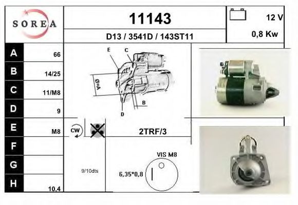 Мощность стартера [кВт] : 0,8