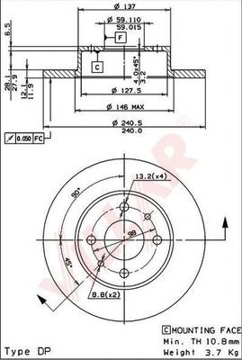 Толщина тормозного диска (мм) : 10,8