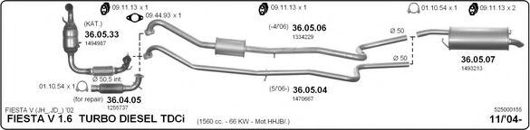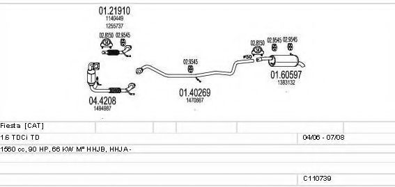 Глушитель в сборе для FORD FIESTA V (JH_, JD_) 1.6 TDCi