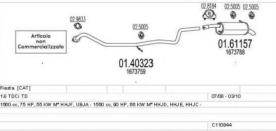 Глушитель в сборе для FORD FIESTA VI 1.6 TDCi