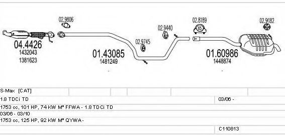 Глушитель в сборе для FORD S-MAX (WA6) 1.8 TDCi