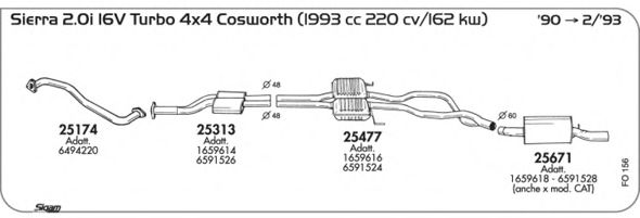 Глушитель в сборе для FORD SIERRA (GBG, GB4) 2.0 16V Cosworth 4x4