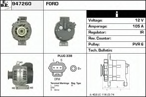 ток зарядки от генератора (А) : 105
