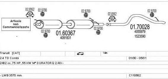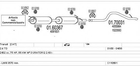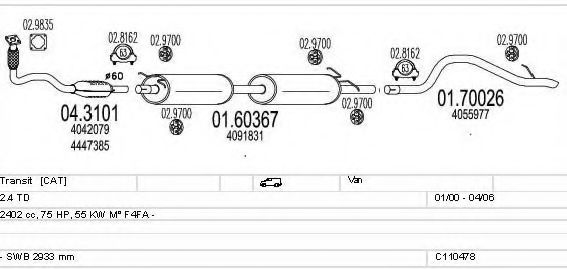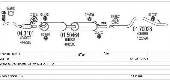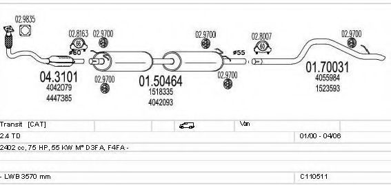 Глушитель в сборе для FORD TRANSIT автобус (FD_ _, FB_ _, FS_ _, FZ_ _, FC_ _) 2.4 DI [RWD] (F_B_, F_C_)