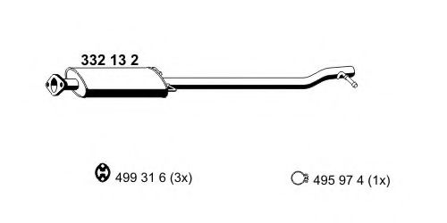 Средний глушитель выхлопных газов