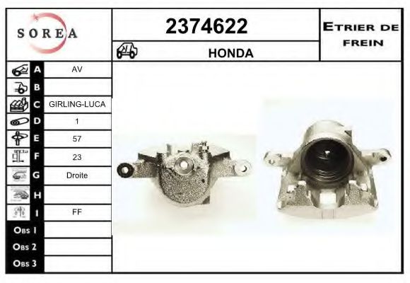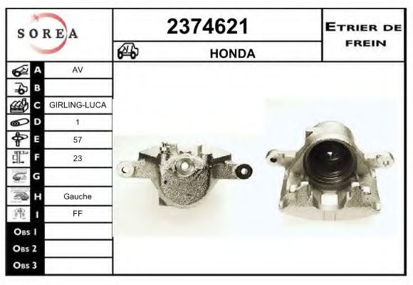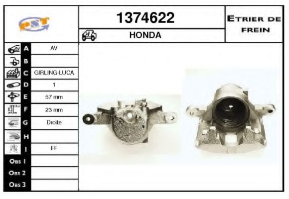 Тип тормозного суппорта : суппорт тормоза (1 поршень)