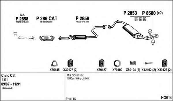 Глушитель в сборе для HONDA BALLADE IV седан (ED) 1.6 i 16V (ED4)