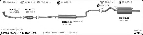 Глушитель в сборе для HONDA CIVIC Mk V универсал (MB, MC) 1.6 16V (MC1)