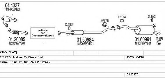 Глушитель в сборе для HONDA CR-V III (RE) 2.2 i-CTDi 4WD