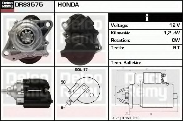 Мощность стартера [кВт] : 1,2 Напряжение [В] : 12 Число зубцов : 9