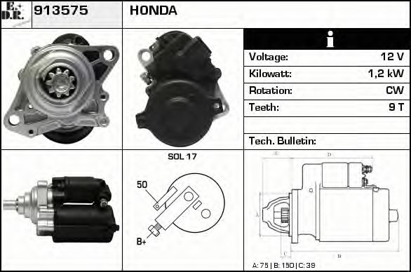 Стартер для HONDA CRX II (ED, EE) 1.6 i 16V Vtec (EE8)