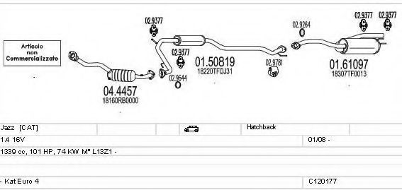 Глушитель в сборе для HONDA FIT III (GE) 1.4
