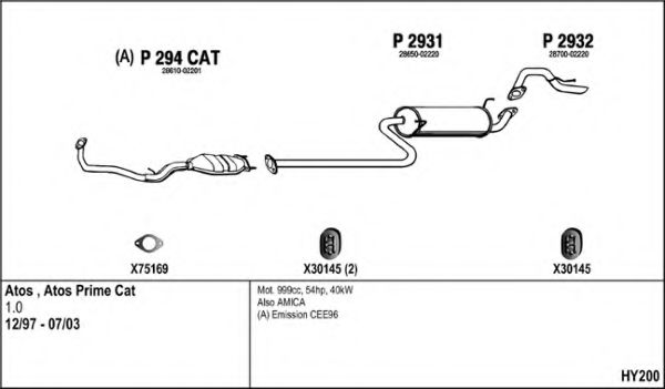 Глушитель в сборе для HYUNDAI AMICA / ATOZ (MX) 1.0 i