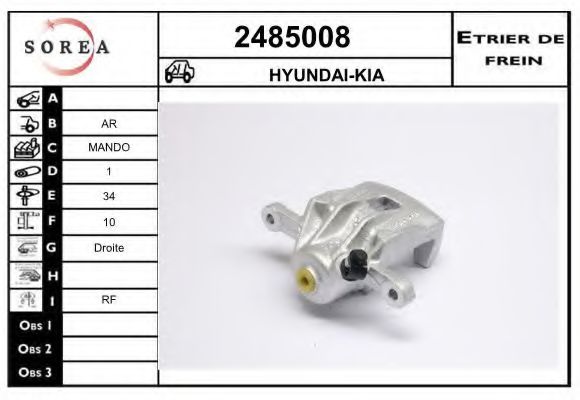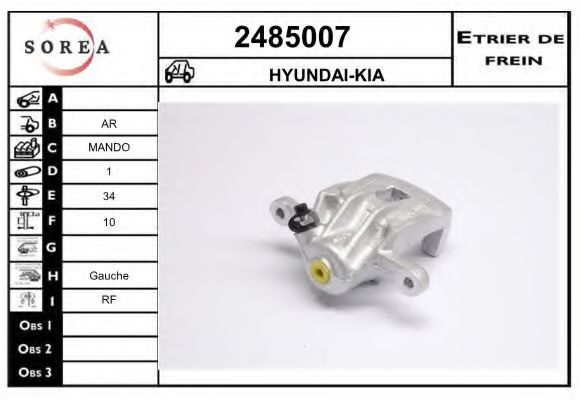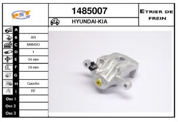Тип тормозного суппорта : суппорт тормоза (1 поршень)