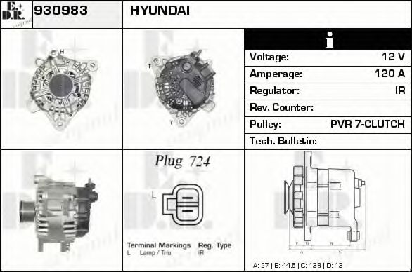 Генератор для HYUNDAI ix55 3.0 V6 CRDi 4WD