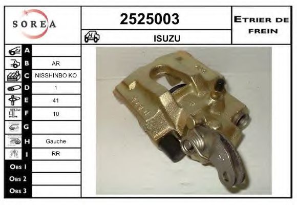 Диаметр поршня цилиндра [мм] : 41,2 Сторона установки : Задний мост слева Тормозная система : Nisshinbo